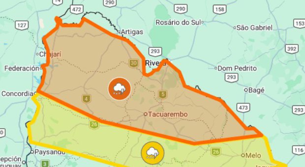 Inumet emite alerta naranja y otra amarilla por tormentas severas y lluvias abundantes