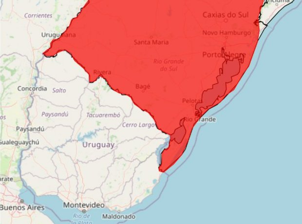 “Gran peligro” estado brasileño fronterizo con Uruguay emitió alerta roja meteorológica